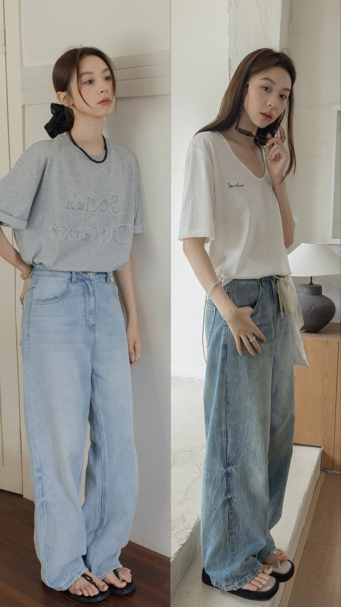 做舊中低腰落地直筒牛仔褲